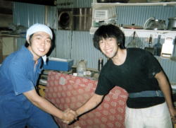でみんなで作った馬台を前に記念撮影!と思ったら、見事に台が写ってなかったです。 ただ仲良くやってるおっさん2人の写真になってしまいました。 この後はいよいよ母屋を再生します。 |