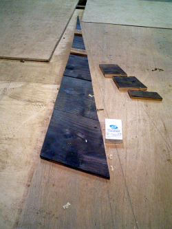 次回はこのように勾配にあわせて切った板を順次打ち付けていって側面は完成します。 あぁ、これで雨漏りの心配は無くなったなぁ・・・ って、まだ終わってないけど。 |